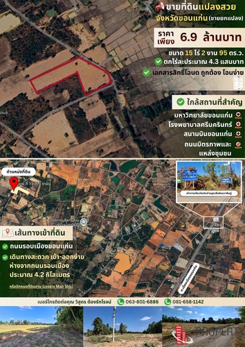 ขายที่ดินเมืองขอนแก่น ด่วน ขายที่ดินสำหรับทำหมู่บ้าน 15 ไร่ 3 งาน ถนนมะลิวัลล์ ซอย โสกเดือนห้า ถนน คอนกรีต จ.ขอนแก่น(ขายยกแปลง)
