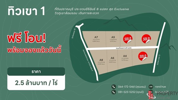 ขายที่ดินปราณบุรี ขายที่ดิน วิวเขา ปราณบุรี ประจวบ ฟรีโอน ฟรี ถมดินสูงกว่าถนน น้ำไฟพร้อมเข้าถึง โทร 081-523-5252
