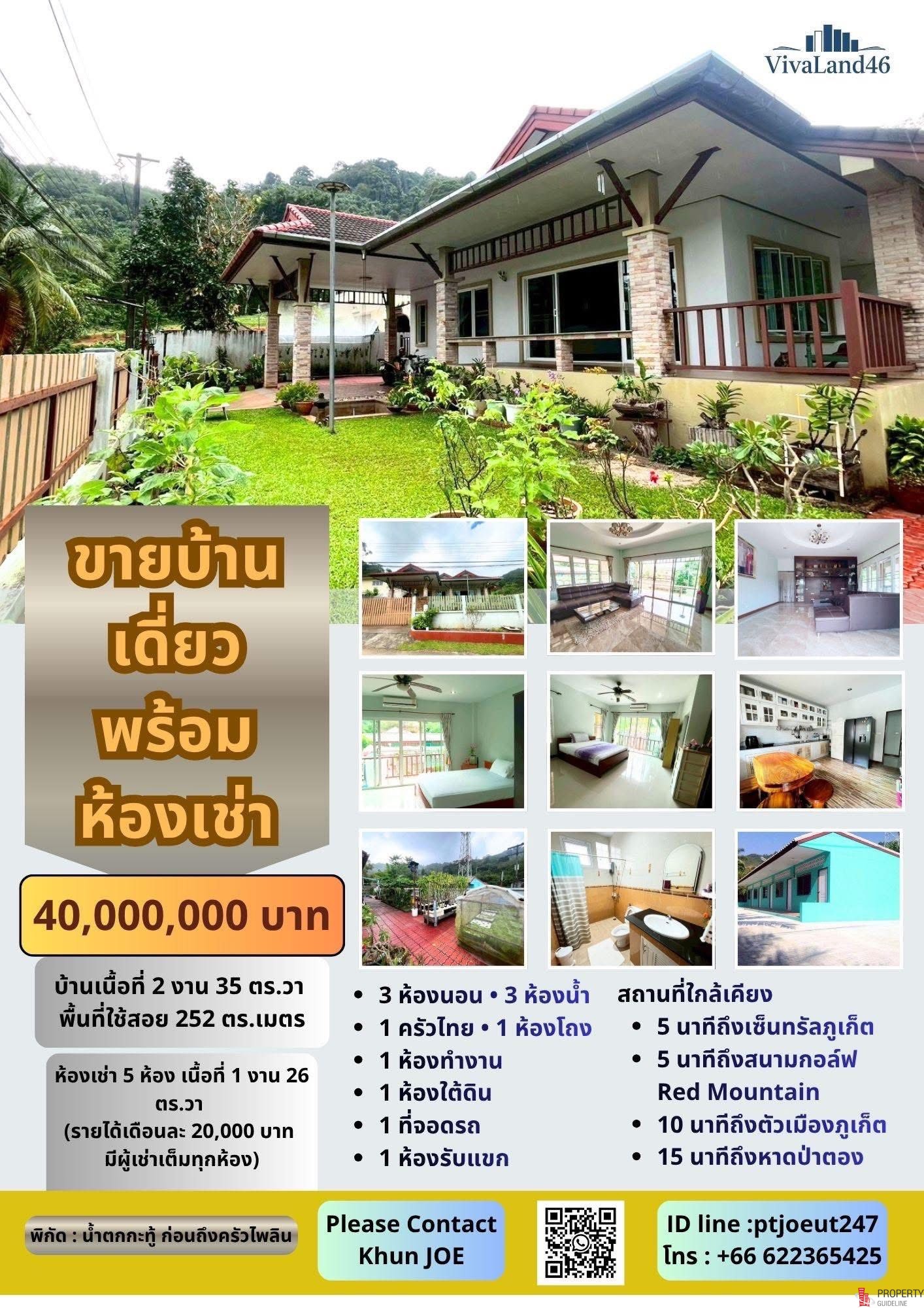 ขายบ้านเดี่ยวกะทู้ บ้านเดี่ยว พร้อมห้องเช่า ในซอยน้ำตกกะทู้ภูเก็ต