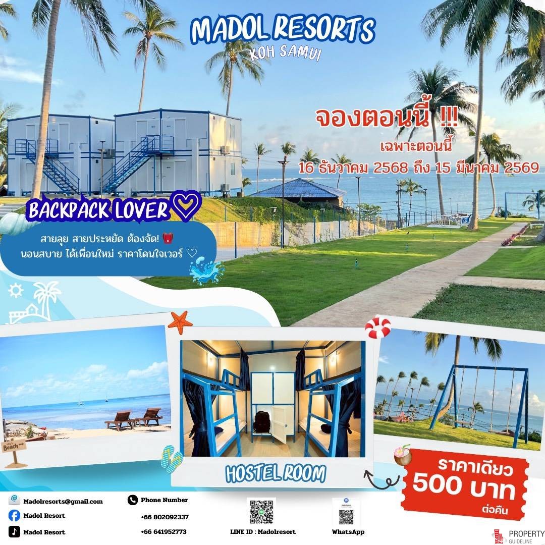 เช่ารีสอร์ทเกาะสมุย โปรโมชั่น พิเศษ ปีใหม่ (MADOL) มาดลรีสอร์ท เกาะสมุย มาว่ายนํ้า อาบแดด หรือผ่อนคลายและชมวิว พักผ่อนหย่อนใจ โทร. 0641952773