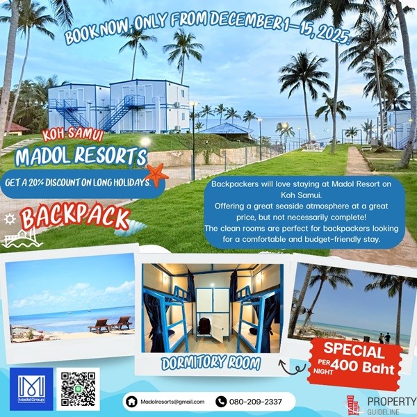 * แบบที่ 2 เป็นห้องรวมสำหรับ backpack ลดราคาพิเศษเหลือ 400 บาทในช่วง 1-15 ธันวาคม