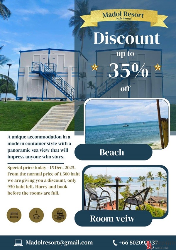 เช่ารีสอร์ทเกาะสมุย MADOL มาดลรีสอร์ท เกาะสมุย พักผ่อนชิลๆ วิวทะเลสุดฟิน ราคาสบายกระเป๋า โปรพิเศษ โทร. 0800292337